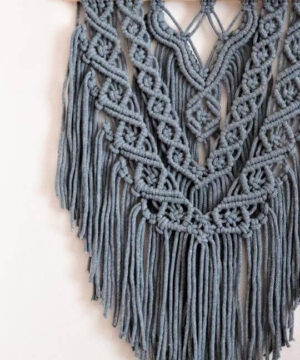 Kwietnik ze sznurka bawełnianego na ścianę wykonany techniką makramy.