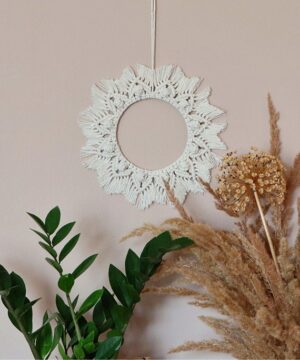 Dodaj do koszyka Szybki PodglądKoło z rafii z makramą – ozdoba ścienna