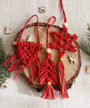 Dodaj do koszyka Szybki PodglądZawieszki na choinkę z makramy – czerwone, mix