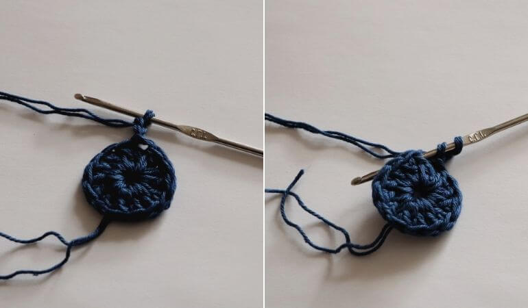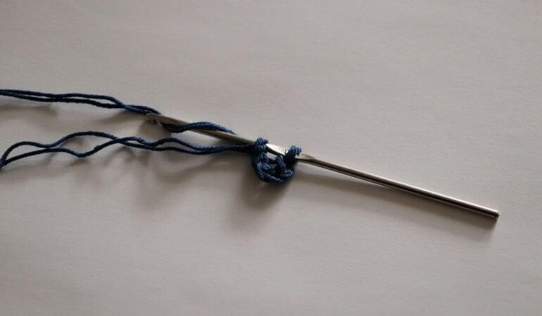 Zaczynamy od zrobienia 4 oczek łańcuszka.